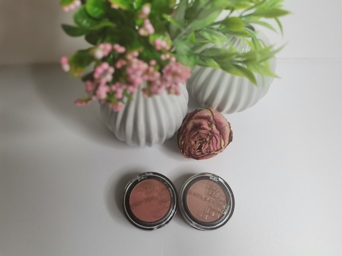 Румяна очень пигментированы, цвета насыщенные. Их становится видно на лице при первом же касании кистью.