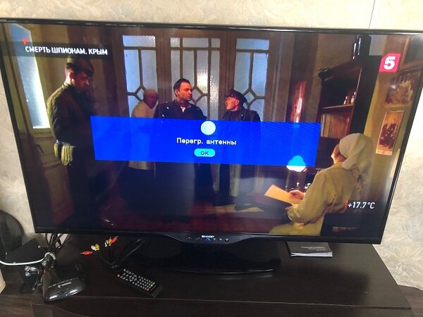 Жмем ОК. если после этого опять появляется наша печальная надпись ПЕРЕГРУЗКА АНТЕННЫ, значит, проблема в тюнере. Внимательно смотрим на входной антенный штекер приставки. Продуваем его, потому что вполне вероятно медная волосинка оплетки кабеля замыкает землю на центральную жилу кабеля. Если же никаких волосинок нет, все чисто, значит неисправен тюнер. Относим тюнер к месту покупки для ремонта или замены.