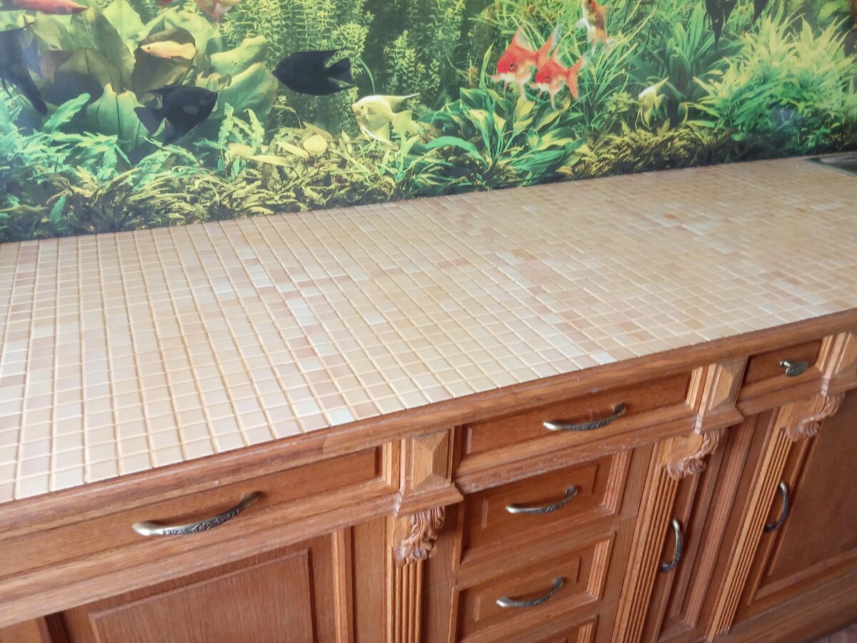 Выбрал расцветку "песочный микс". Я не плиточник, поэтому моя затея носила чисто экспериментальный характер, с возможностью в случае чего поставить любую другую столешницу. Затраты на этот же вариант заключались в покупке лишь только самой мозаики.