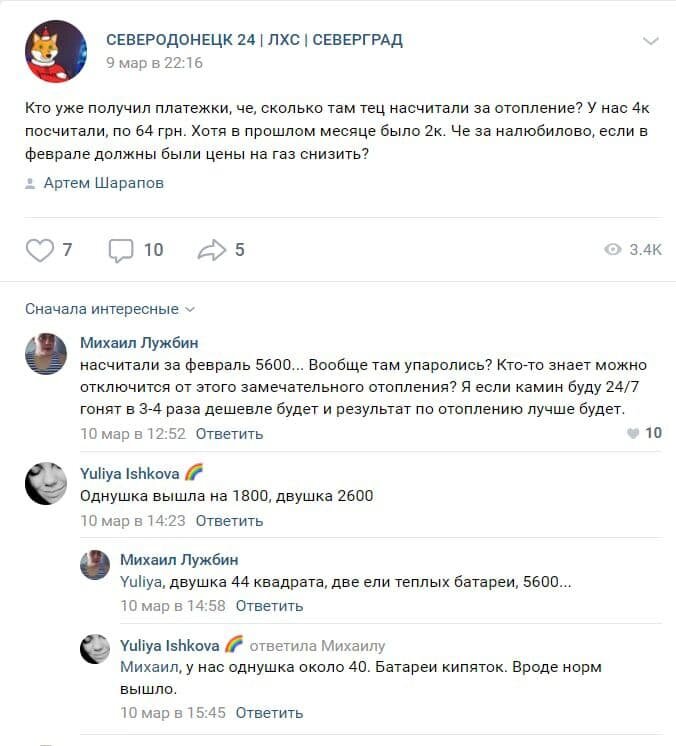 Несмотря на обещание правительства о снижении цены на газ и уже откровенно весеннюю погоду жителям Северодонецка приходят не обосновано высокие счета за отопление‼️ По моему кто-то опять планирует нажиться на людях.