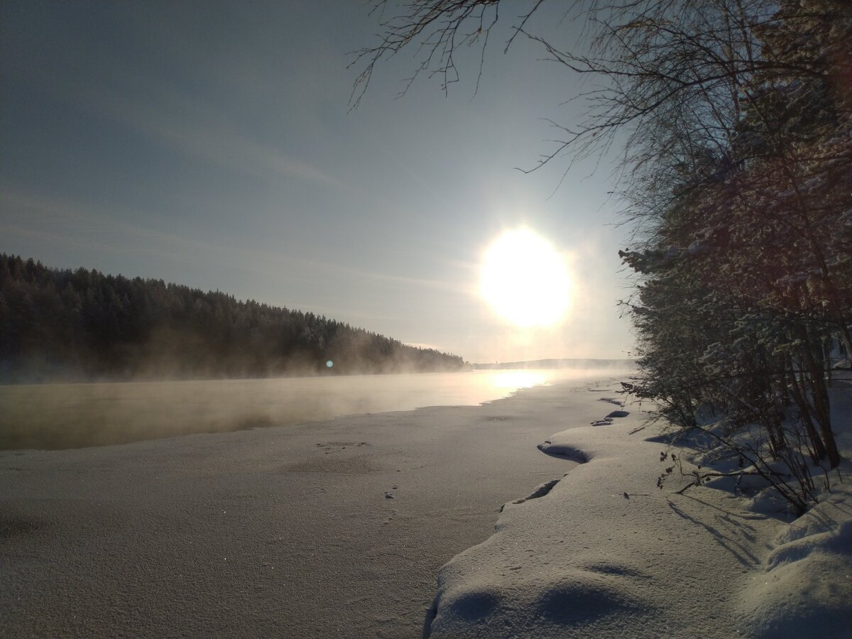 Недалеко от дома нашла она полянку на берегу Имандры. Солнце было уже низко, и его тёплые лучи освещали ярким оранжевым светом как раз тот берег озера, на который вышла Северная Ведунья. Из сухих веток и сучков развела она огонь и начала нанизывать на прутики блины, оставшиеся у неё в корзинке, чтобы подогреть их на костре. Тут же рядом она поставила котелок с водой, добавила туда еловых иголок и варенья из лесных ягод, и довела этот ароматный отвар до кипения. И так сидя у костра, встретила она весну, угощаясь блинами с дымком и ароматным лесным чаем.