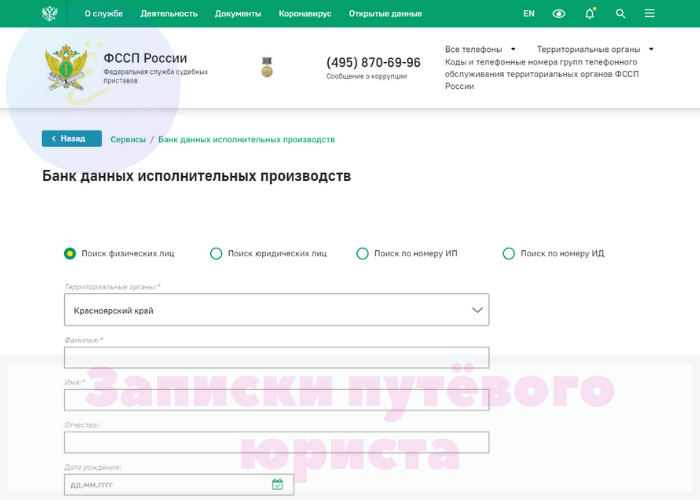 Первым делом заходим на сайт "Банк данных исполнительных производств" он находится по адресу: https://fssp.gov.ru/iss/IP