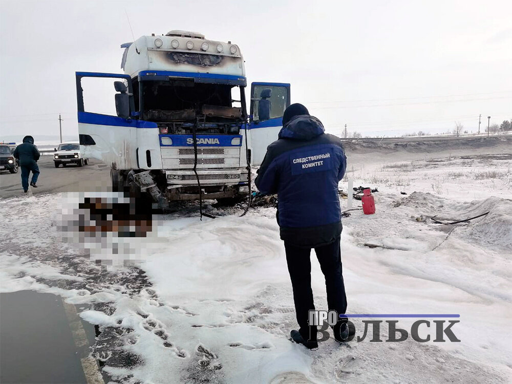 Вольские следователи выясняют обстоятельства гибели 50-летнего жителя Тольятти Дмитрия Савельева, который сгорел в кабине грузовика.