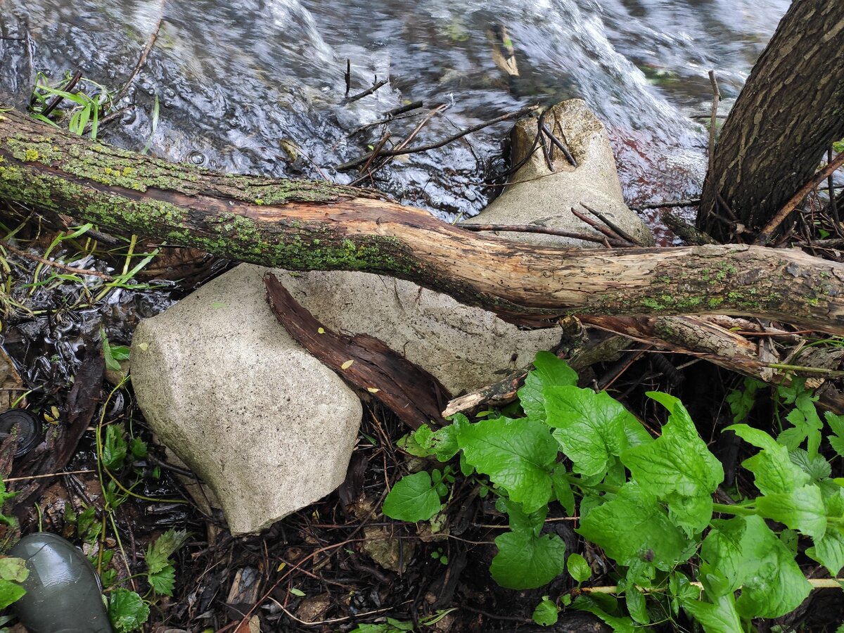 В процессе обхода местной речушки в поисках перспективного места ловли рыбы, наткнулся на разрушенный мост. Когда вода в реке на низком уровне возможно даже переехать на другой берег.
