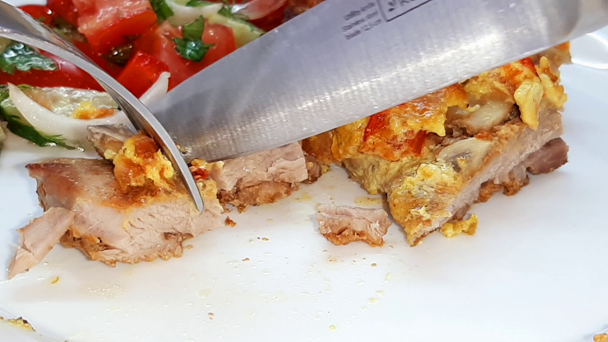 Такое мясо отлично сочетается с овощным салатом.