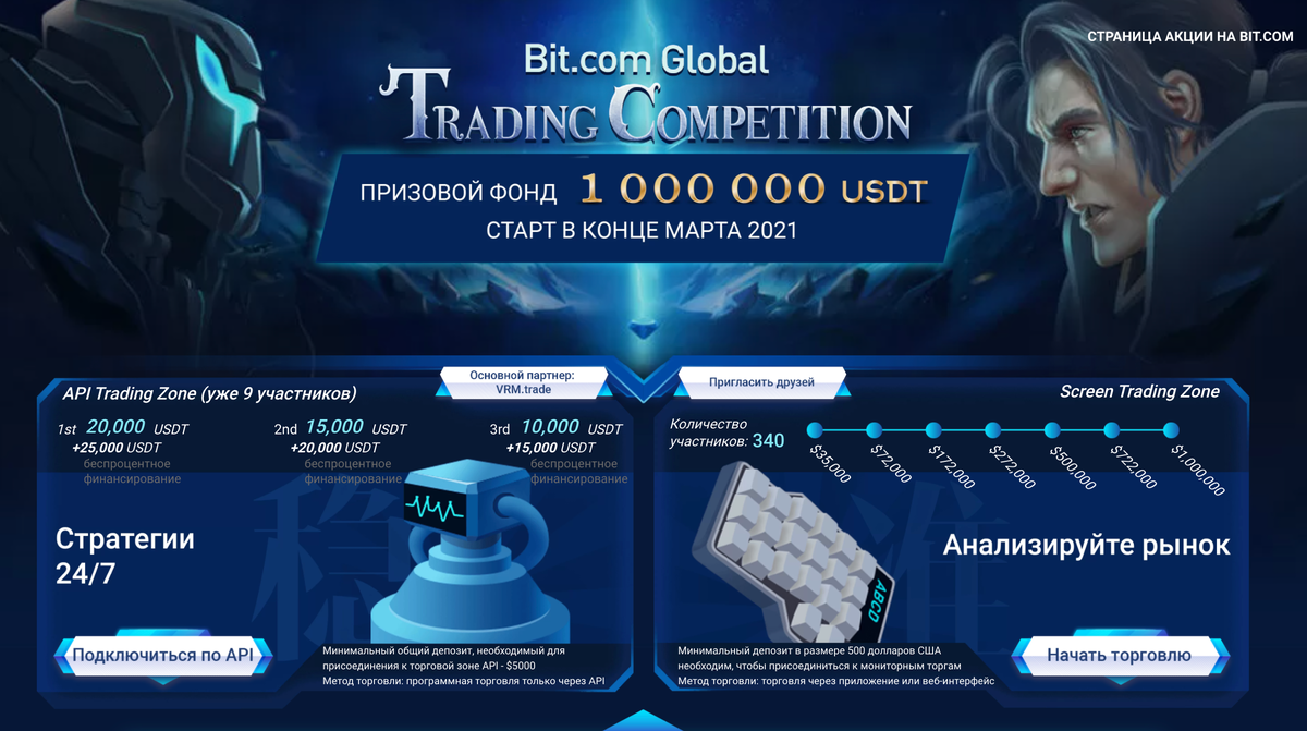 Вы можете присоединиться к торговле через API или торговать напрямую, чтобы выиграть $1,000,000 .