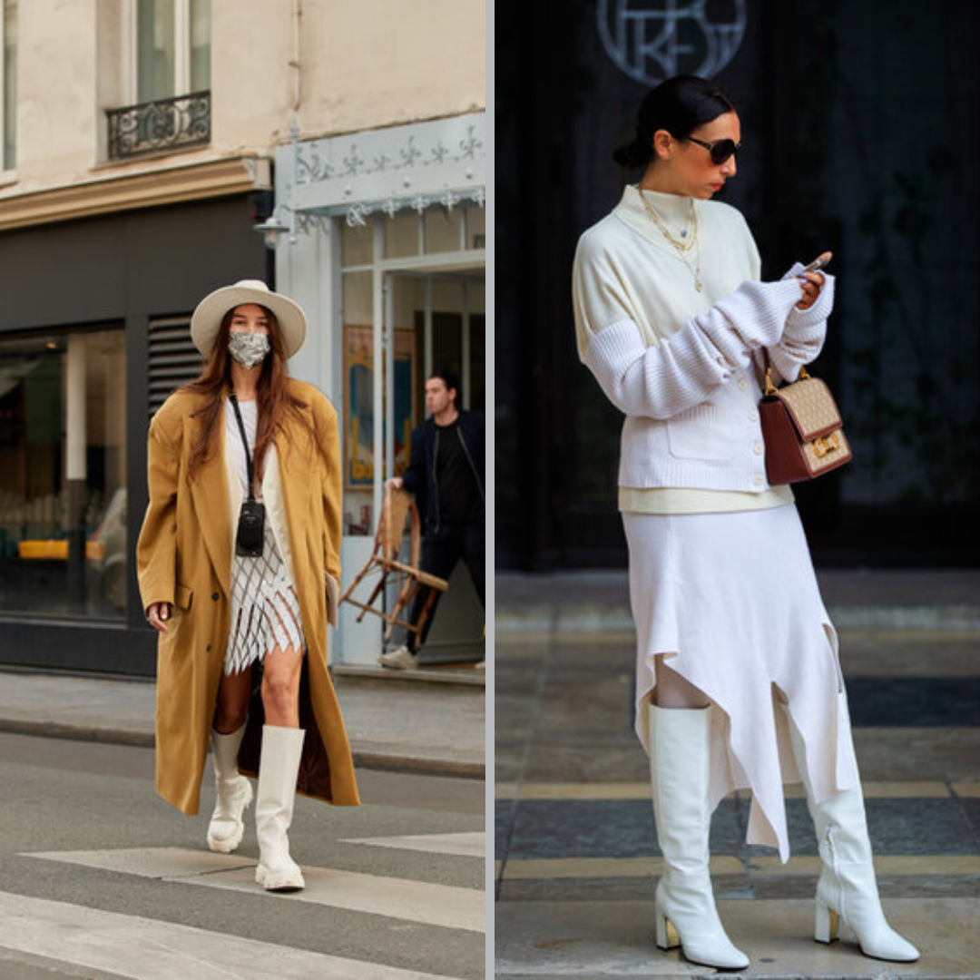 Основная фишка модной весны в Париже. Кто-то усмотрел здесь отклик моды 70-х лет, но действительно белые сапоги сейчас чрезвычайно популярны. Причем выбор моделей неограничен. Это могут быть ботфорты с прямым широким голенищем и узкие изящные сапоги-чулки, плотно облегающие голень.