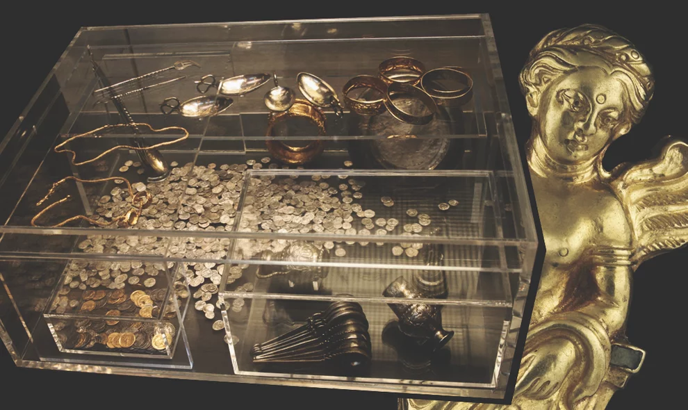 В 1992 году кладоискателя-любителя Эрика Лауса попросили отыскать потерянный в поле молоток. Как ты понимаешь, молоток он не нашел. Его металлоискатель выдавал довольно сильный сигнал, источником которого стали серебряные ложки, золотые ювелирные украшения, серебряные и золотые монеты. Эрик с трудом набил ими два мешка, после чего решил оповестить археологов. Вторичные раскопки подняли из земли ещё 14 865 римских монет, из которых 565 были золотыми и 14 191 серебряными, и около 200 предметов, датируемых 460 годом нашей эры. Суммарно клад оценили в 2,6 миллиона долларов.