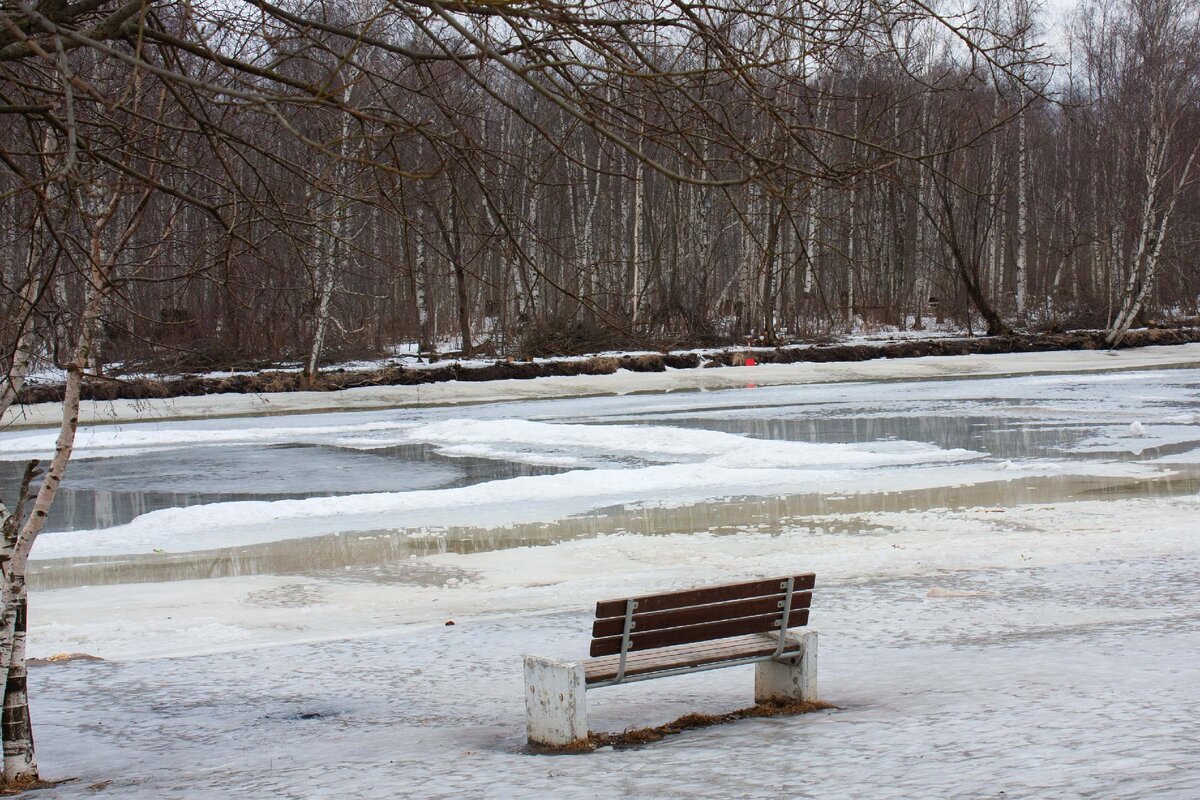 Сама Глухарка уже начинает подтаивать, но квадратные очертания катков ещё видны. На лёд никто не выходит.