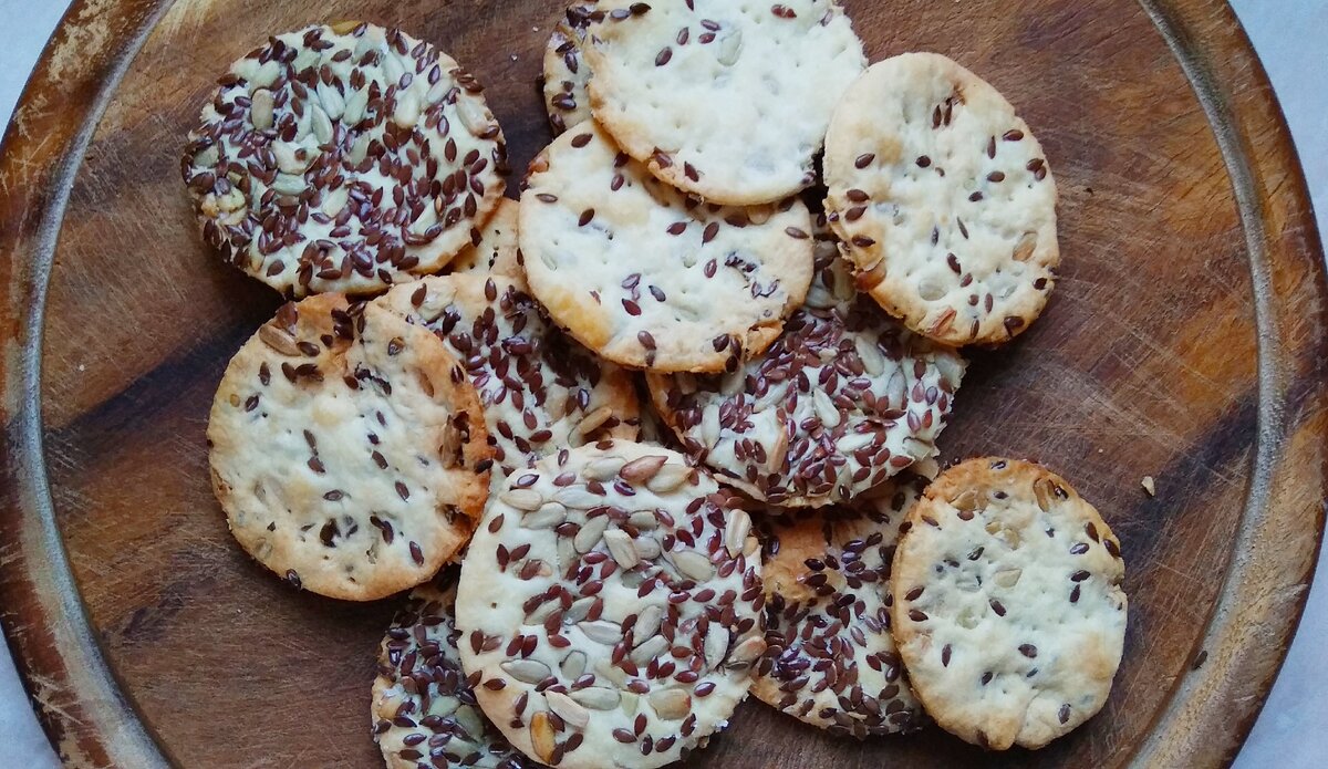 Сегодня я хочу поделиться незамысловатым рецептом очень вкусного рассыпчатого крекера. Я люблю его с льняными семечками, но также очень вкусен он и с приправами, да и просто с солью.