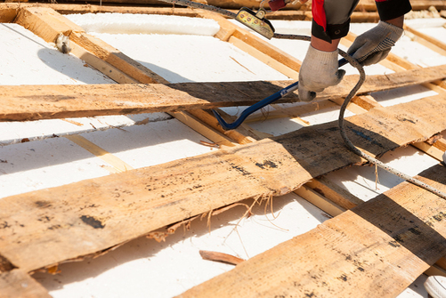 После удаления покрытия приступают к демонтажу кровельного пирога:
