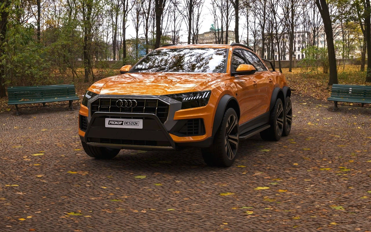 В Сети появилось работа российского 3D-дизайнера с необычной версией пикапа Audi: Ростислав Прокоп показал не только фото, но и видео со своей версией Audi Q8 6x6 Quattro.