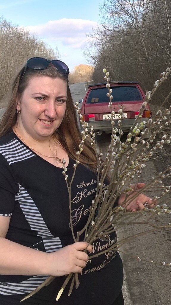 Во-первых, мы долго колесили в поисках самой вербы. Мы хоть и живём в провинциальном городе, но верба у нас не растёт на каждом шагу. Мы с мужем даже укатили уже в какую-то деревню, пока ехали по трассе, то на обочине он увидал деревце с почками и сказал мне остановиться. Мы вышли из машины и пошли к тому дереву. Оно было вполне с почками, похожее очень на вербу. Мы решили, что нашли наконец - то вербу. Были этому даже рады. Нарвали веток побольше: для наших родственников, соседей и знакомых. Потому что, на тот момент мы думали, что и люди её с трудом будут так же искать, как мы её искали весь день. Хотели всех уважить☺️всё равно вроде на колёсах, да и нам не сложно.
