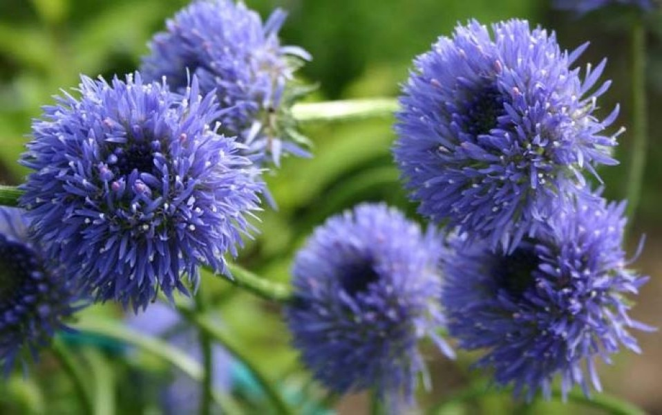 Шарообразные головки состоят из множества синих венчиков-колокольчиков, их насчитывается до 300 в каждом соцветии. Диаметр головки - 3 см. Цветение длится все лето до осени.