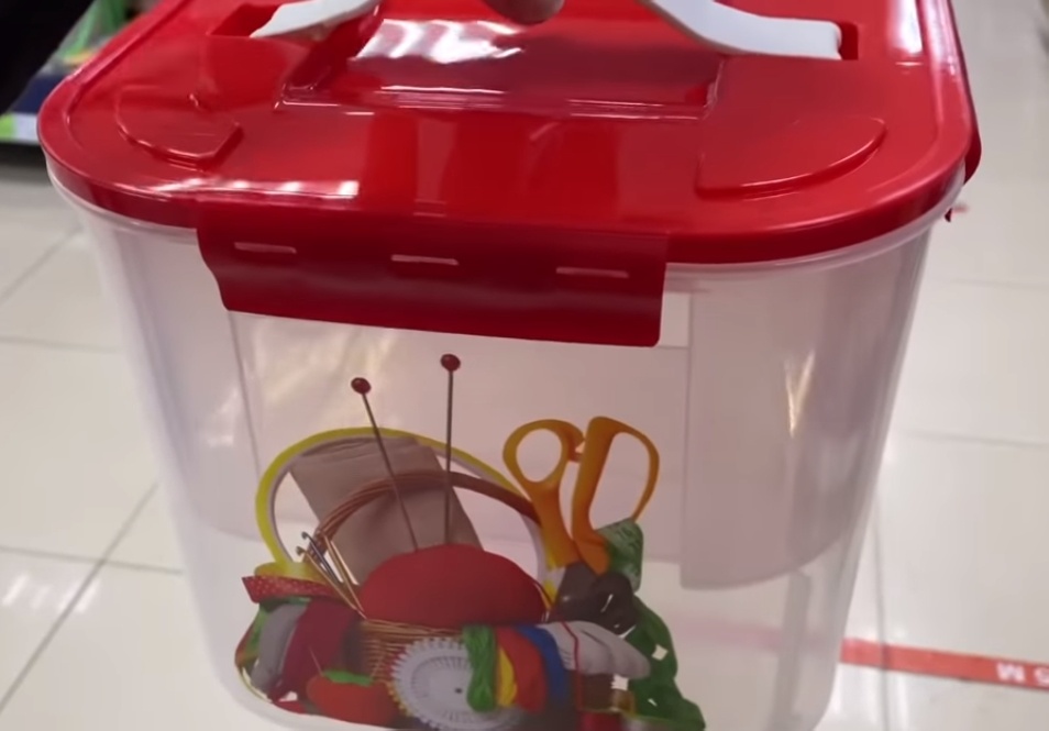 Изготовлен из пищевого полипропилена, а ручка из анти скользящего термоэластопласта, крышка закрывается с 4 сторон на защелки, качество хорошее