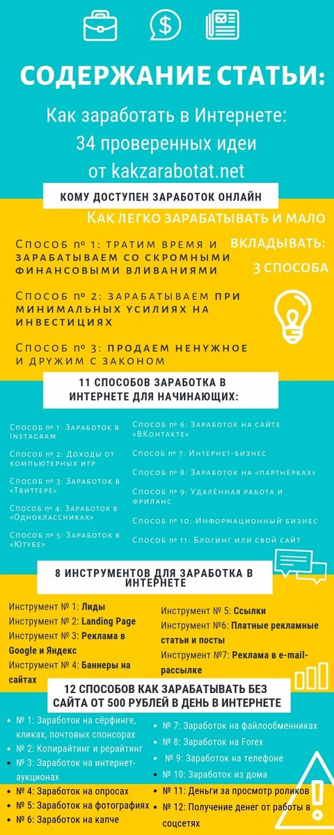 В процессе работы происходит постоянное совершенствование, так как за Интернетом не угнаться. И чтобы быть в первых рядах, вам постоянно нужно узнавать что-то новое, необычное, экспериментировать и применять новшества на практике. Лучше всего довериться тем видам заработка, которые проверены, доведены до совершенства другими людьми. К ним относятся: