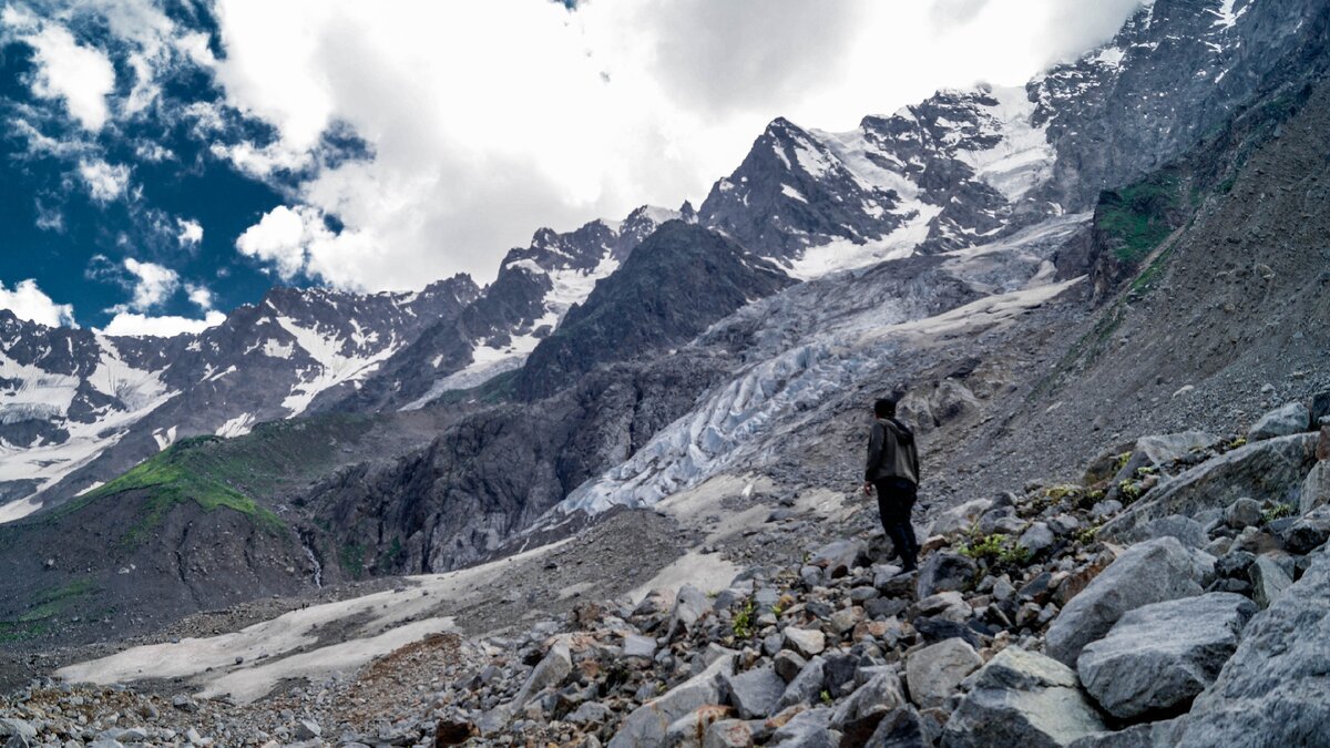 Ледник Шаурту находится в верховьях Чегемского ущелья. Именно там рождается река Чегем, за белоснежными хребтами уже начинается Грузия.