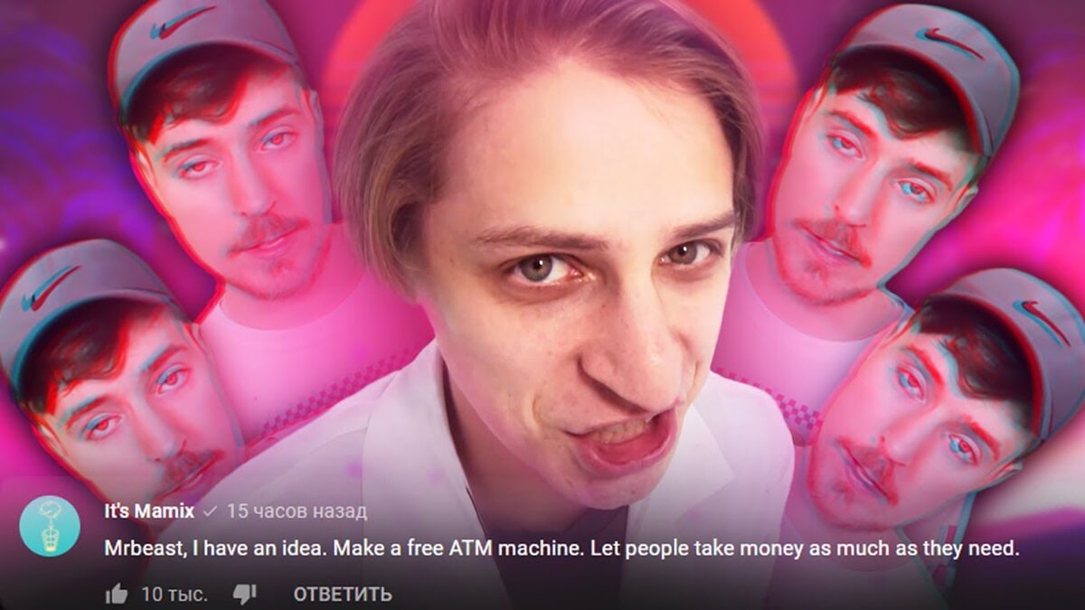 Максим Монахов в сообществе YouTube канала Мамикс Life обратился к одному из самых популярных блогеров в мире- Mr Beast (55 млн подписчиков). Наверняка вы не раз слышали об этом человек для которого снять челлендж и потратить сотни тысяч долларов уже обыденность. Банк, в котором просто так дают любую сумму- это Мистер зверь, десятки тысяч долларов курьеру- это Мистер зверь, отдать лампу тому кто