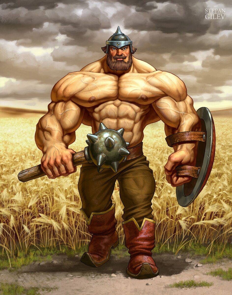 1. Имя первого силача, на которого упал мой взгляд встречаем в "Повести временных лет". В ней рассказывается как в 992 году на нашу землю напали печенеги и порешили князь Владимир и хан печенежский, дабы не губить своих войск решить все поединком между воинами с обоих сторон. Кроме того хан дал обещание, в случае победы русского воина не совершать набеги на русскую землю в течение года. Обрадовался князь такому предложению, но радость его была не долгой, закончилась она в тот момент, когда вперед выехал печенежский воин огромного размера, состоящий из одних мышц. Князь Владимир был расстроен. В случае поражения он должен был заплатить печенегам дань. Да и честь русского воинства оказалась под угрозой. Три дня не могли сыскать поединщика в русском войске. Князь уже почти совсем отчаялся. И тогда из полка вышел «един стар муж», который сказал, что пришел на битву со своими тремя сыновьями. А четвертого оставил дома. Но этот-то четвертый – самый сильный из всех. Он кожемяка – каждый день мнет руками кожи. И от этого, говоря современным языком, «раскачался». В уличных потасовках никто и никогда не мог побороть его. А когда отец принялся его за что-то ругать, Кожемяка разорвал руками целую кипу кож.