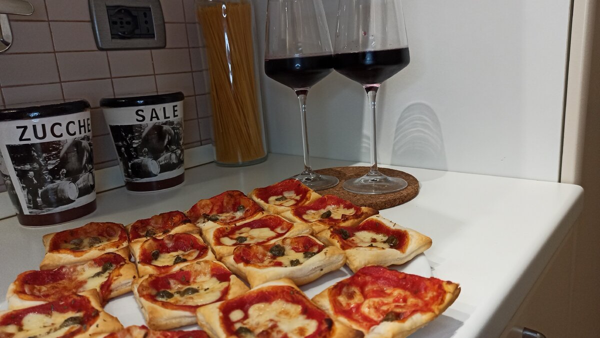 Слоёное тесто, я взяла магазинное, которое всегда лежит в холодильнике "на всякий пожарный" , как раз для таких случаев.