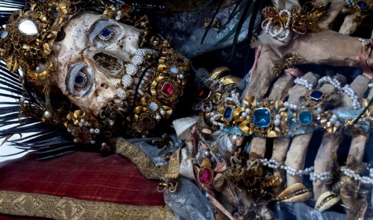Практически во всех старых городах Европы, имеющих историческое наследие, имеются церкви, где можно наблюдать удивительные экспонаты – скелеты, унизанные драгоценностями подобно рождественской елке. Причем некоторые из них столь богато изукрашены золотом и драгоценными камнями, что похожи на сверкающие статуи. Многие из них также наряжены в великолепные одежды из благородных материалов – шелка, парчи, мехов. Все эти необычные останки можно объединить одним названием – Святые из катакомб.