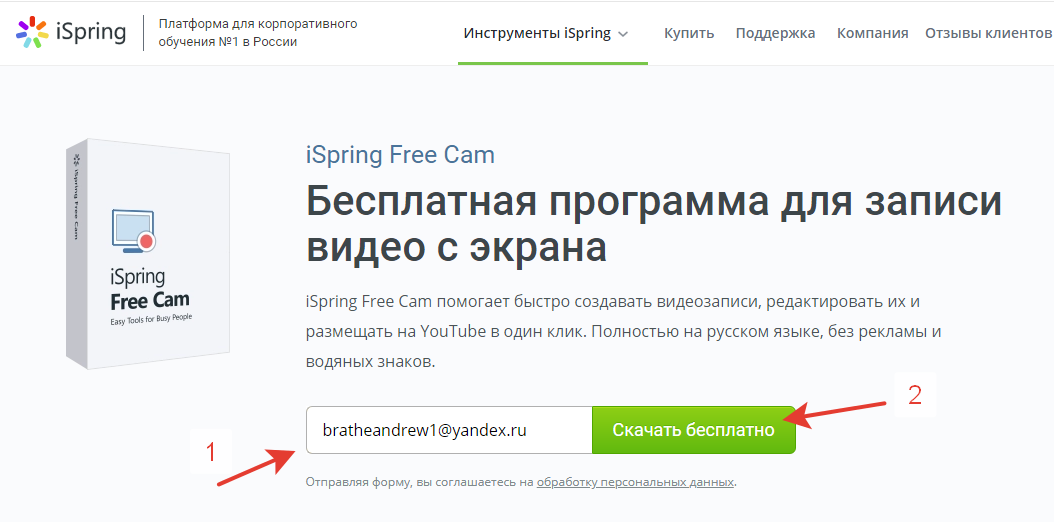 2. Для скачивания iSpring Free Cam перейдите по ссылке