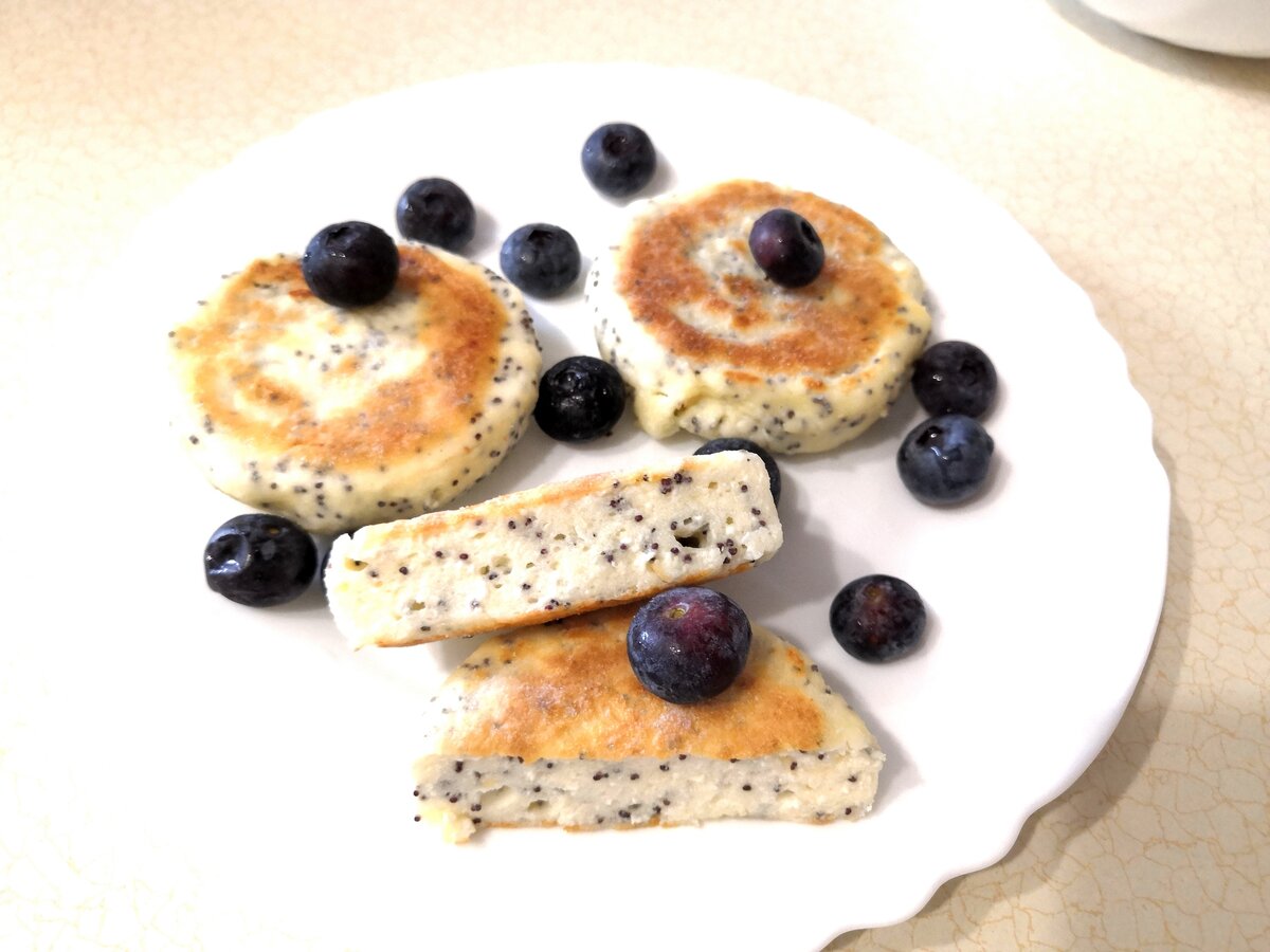 1 столовую ложку мака залить кипятком и оставить на 5 минут. В другой миске смешиваем творог, яйцо, рисовую муку и подсластитель.