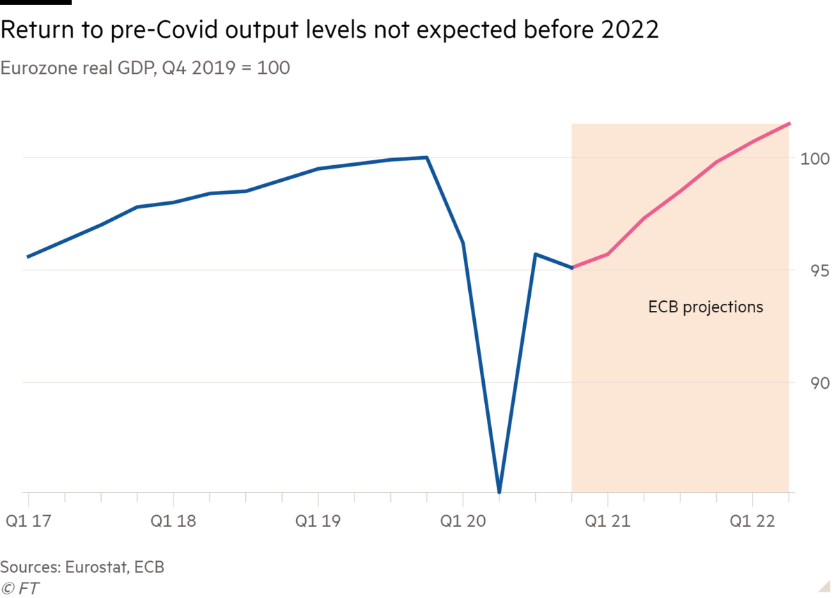 Экономисты снижают прогнозы роста экономики еврозоны, поскольку третья волна инфекций Covid-19 и задержки вакцинации вызывают ужесточение ограничений в нескольких странах, включая Францию, Италию и Германию.