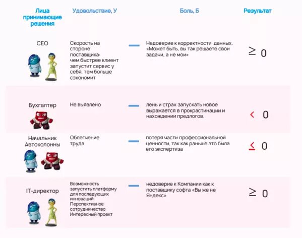 Если обогатить предыдущий опыт «принятия решений» различных ЛПР данными о контексте и ключевыми действиями, то получится такая карта. Этот фрейм также показывает какие факторы подталкивают компанию – как совокупность людей к решению, а какие тормозят.