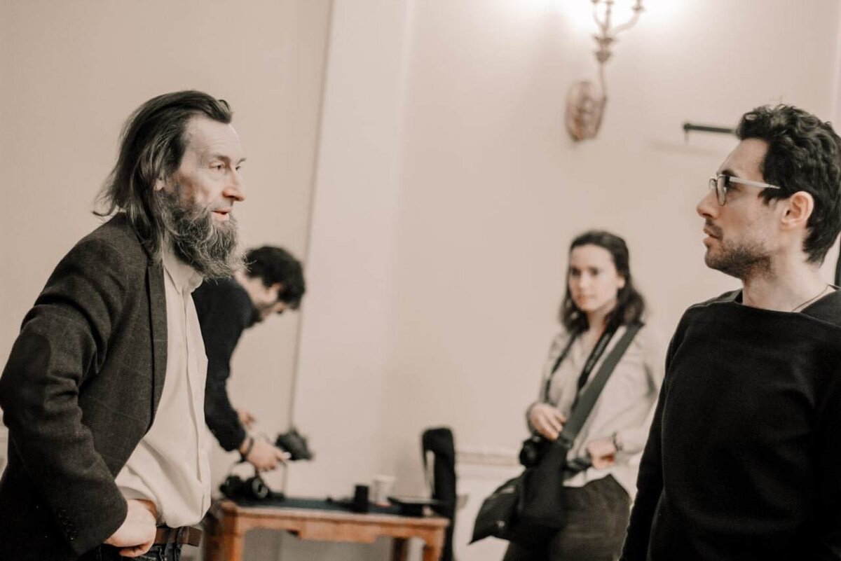 Ведущий Олег Ерёмин и театровед Вадим Максимов в пилотном выпуске проекта «Все умрут, а я останусь» © Мария Большакова / Театрология