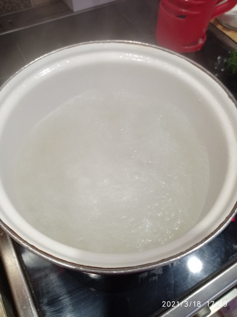 Ставим кастрюлю с водой на плиту, добавляем соль по вкусу и ждём закипания.