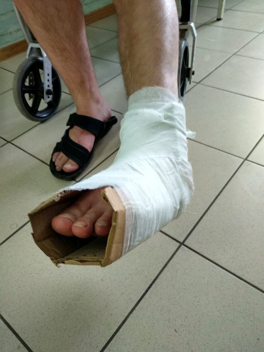 Через 2 дня я доковылял до больницы, где старый гипс был снят и наложен полиуретановый бинт. Скажу сразу, гипс который кладут первоначально в травмпункте и полиуретановый бинт - это небо и земля. Стандартный гипс – тяжеленный, хрупкий, маркий, за все время пока выздоравливаешь он превратится в кусок грязного г…на! Бинт можно протирать влажной тряпкой, он легкий, с отличной фиксацией на ноге, не разваливается в процессе носки. Вообщем плюсов больше, но самый главное, что я смог с ним зайти в море и накупаться на все деньги! Небольшой минус конечно есть, но не в самом бинте, а в его подложке. Подложка – это обычная ткань или марля между ногой и бинтом, и она увы промокает во время купания, поэтому сильно злоупотреблять нахождением в воде не стоит. 2-3 раза можно, а потом просушивать, чтобы нога внутри бинта не задохнулась и плесенью не пошла))) Но даже эти 2-3 раза это лучше чем ничего.