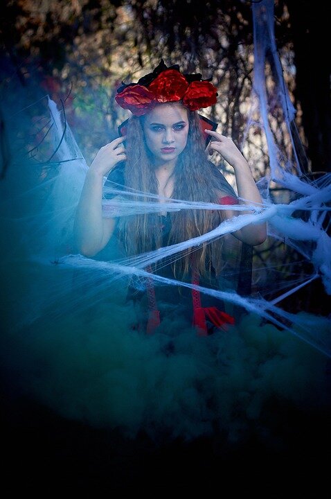 В самой глубине темной чащи замаячило вдруг белое пятно. Оно приближалось. По мере приближения стал различаться женский силуэт. Вот призрачная женщина вышла из чащи на залитую лунным светом поляну. Платье ее напоминало серебристую листву. Волосы тоже были совсем серебряными, то ли от седины, то ли от лунного света. Голову украшал венок из белоснежных водяных лилий. По ничего не выражавшему, неживому лицу стекали темные капли крови.
