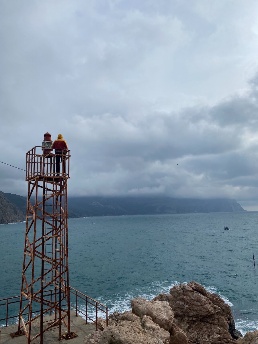 К сожалению, он уже не функционирует, коррозия пожирает его и создаёт необыкновенную атмосферу, особенно ощущаемую в пасмурную погоду. Взобравшись на него моя фантазия разыгралась настолько, что я ощутила себя вперёдсмотрящим на марсовой площадке. Внизу бушует темно-синее море, впереди туман и будто бы вот-вот покажется айсберг. Люблю такие места, где нет скопления народа, можно спокойно