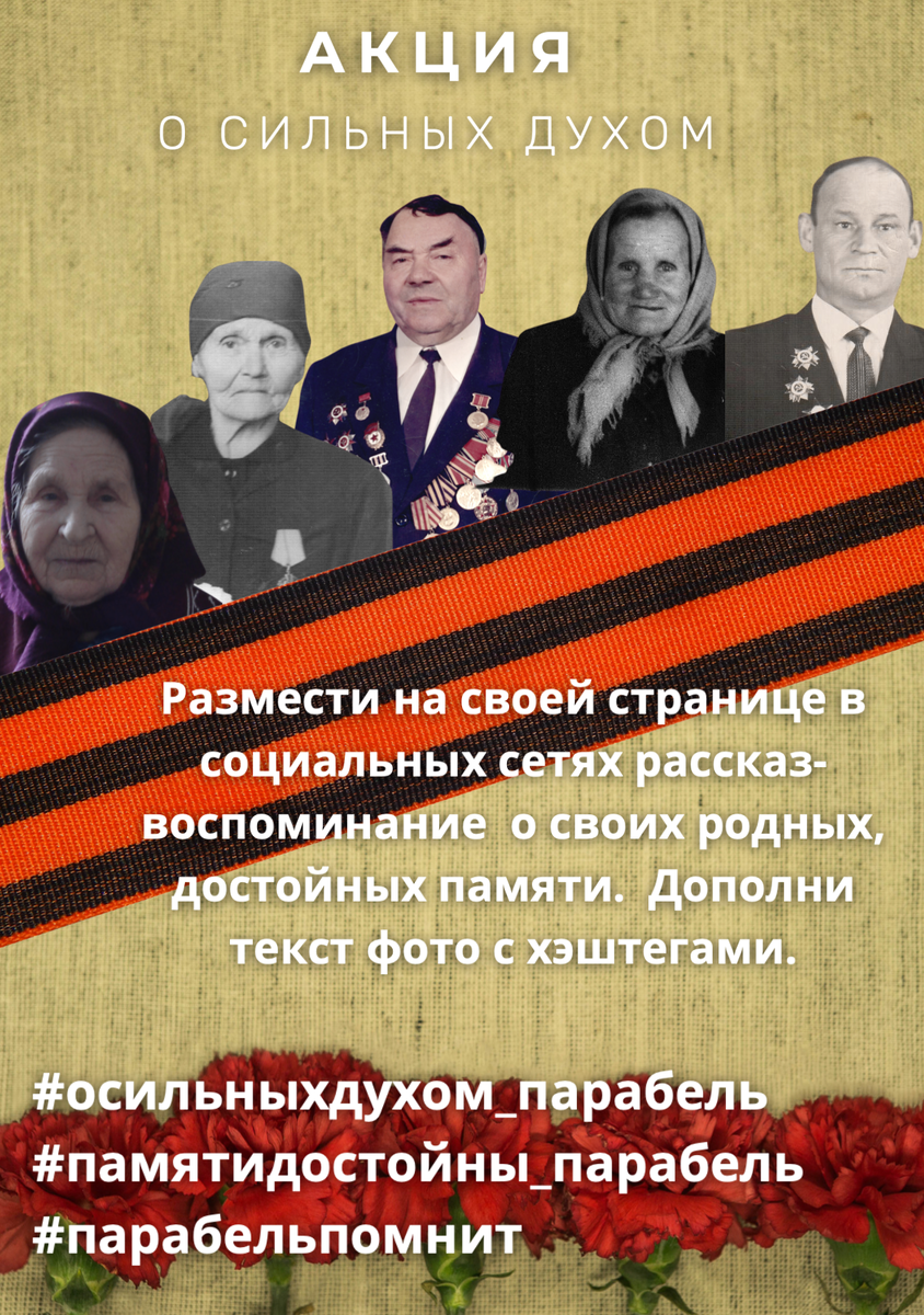 Пока живы наши родные пусть расскажут историю своей жизни и трудовой деятельности на благо Парабельского района. Возможно, кого-то из таких людей уже нет в живых, но вы записывали их истории ранее. Предлагаем вам опубликовать в своих социальных сетях воспоминания о своих родных или знакомых, достойных памяти. Разметите свой рассказ с фотографией и хэштегами