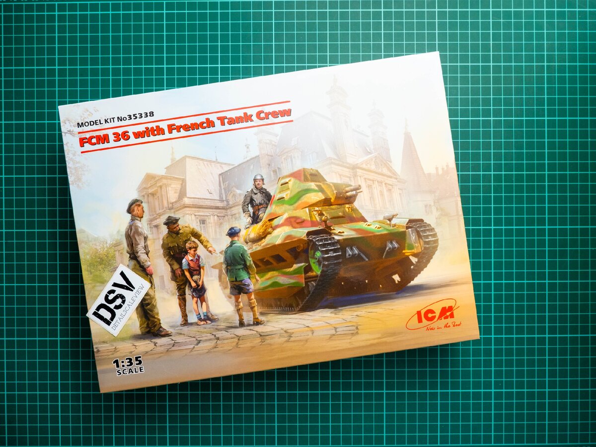 Сегодняшний набор заинтересует тех, кто хотел бы получить сразу несколько наборов в одной коробке. В этот раз ICM даёт нам французский танк вместе с фигурками. Разумеется, они отлиты в 35-ом масштабе, что может стать отличной основой для сборки диорамы. У нас здесь коммерческий образец, так что вы получите ровно то же, что и в обзоре. Упаковка стандартная, все рамки разложены по нескольким