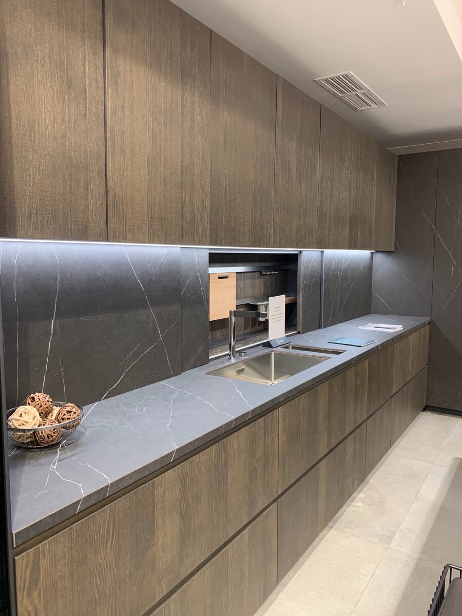 - Третий вариант мойки возможен только при использовании каменных (или аналогичных по прочности столешниц) - интегрированные из того же материала, что и сама столешница. Вариант отличный с точки зрения эстетики - мойка не бросается в глаза, чаша растворяется в массе столешницы. Есть минус - это стоимость, естественно.