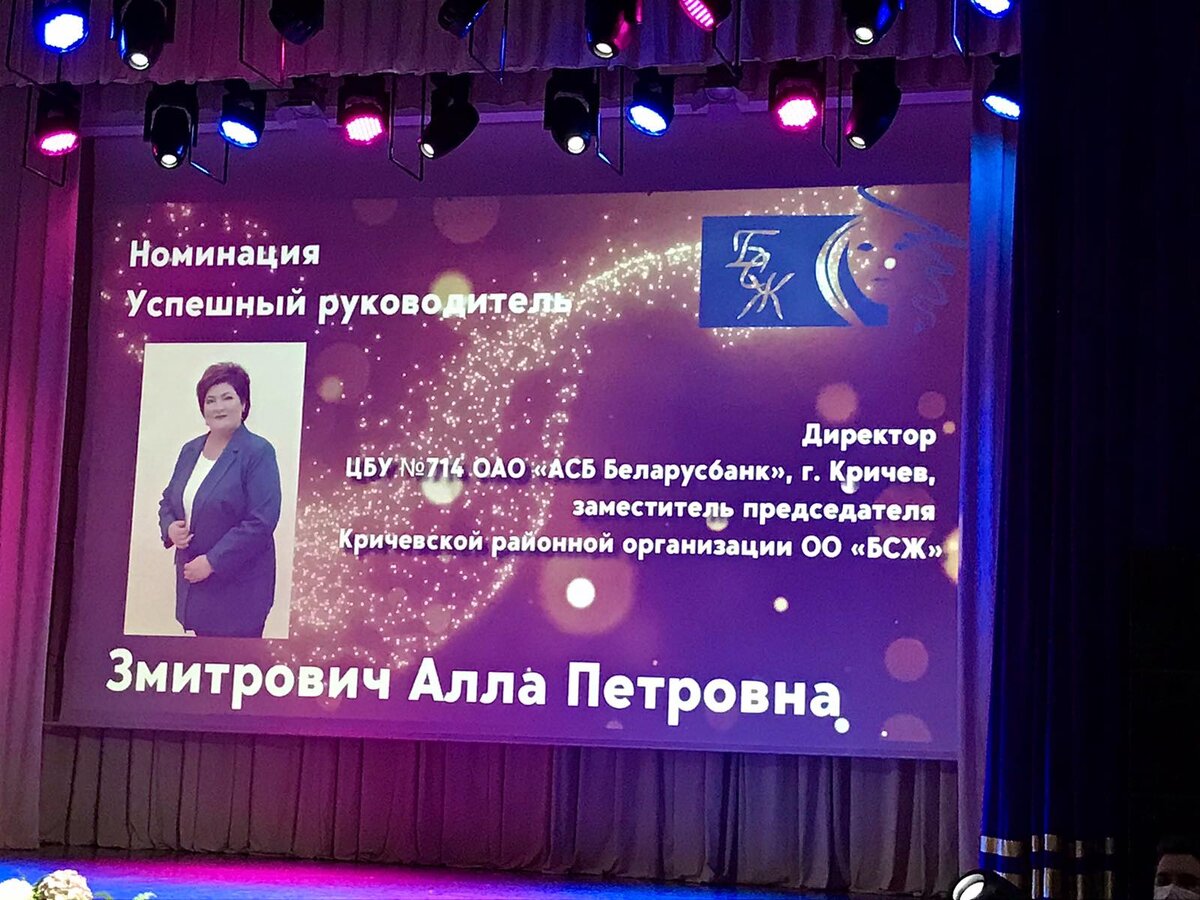 Кричевлянка Алла Змитрович стала победительницей республиканского конкурса «Женщина года-2020» в номинации «Успешный руководитель». Проводило конкурс, собрав в столице Беларуси самых успешных представительниц прекрасной половины человечества, авторитетное в стране общественное объединение «Белорусский союз женщин». Дипломы победительницам этой номинации вручил заместитель премьер-министра Республики Беларусь Игорь Петришенко.
