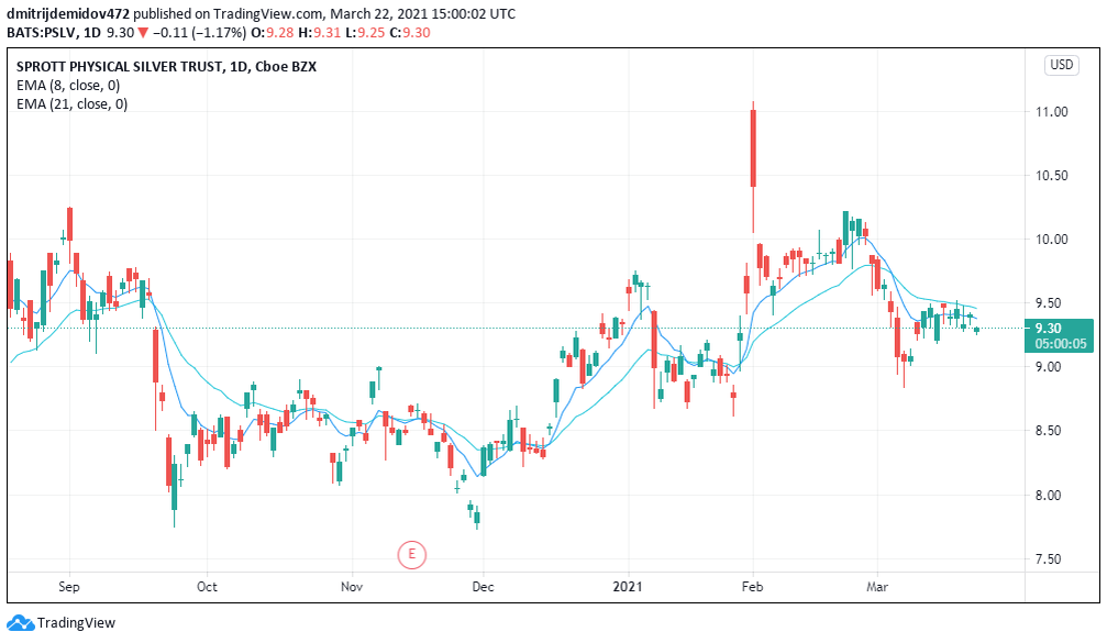 С технической стороны фонд почти полностью следует ценам на серебро. Советую смотреть обзоры товарных рынков, чтобы понимать всю картину.