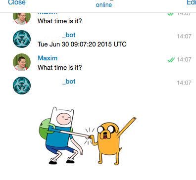 Как можно было заметить, Telegram присылает сообщение целиком, а не разбитое, и ограничение на то, что команды начинаются со слеша — только для удобства мобильных пользователей. Благодаря этому можно научить бота немного говорить по-человечески.