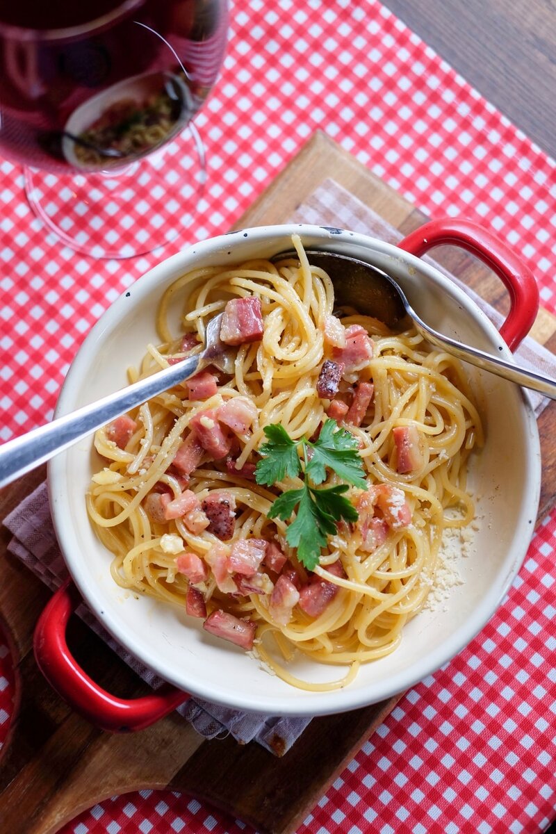 3. Как только спагетти готовы, опускаем их в соус и очень хорошо перемешиваем. После этого, блюдо сразу подаем к столу.