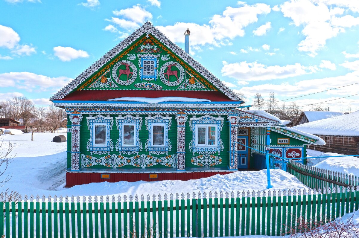 Кроме большой Преображенской церкви, которую видно из далека, Пурех богат красивыми домами с резными наличниками и кружевными фасадами. Есть в селе несколько заброшенных церквей, по ним будет отдельный пост. В этом же отчете покажу самые яркие рукотворные фантазии, украшающие частные дома. Самые интересные находятся на ул.Луговой.