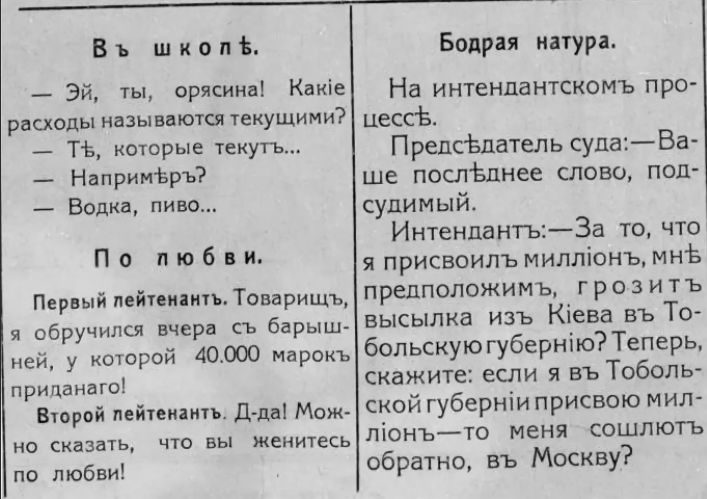 А начнем мы с двадцатки бородатых, еще дореволюционных анекдотов, хотя некоторые из них сохранили актуальность и кажутся, что появились только вчера. Поехали:
