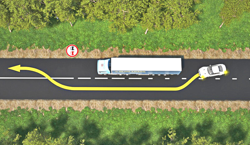 2. Автомобилисту помешали своевременно закончить маневр. Обгоняемая автомашина начала набирать скорость. Обгоняющий водитель попросту не успевал до начала сплошной линии.