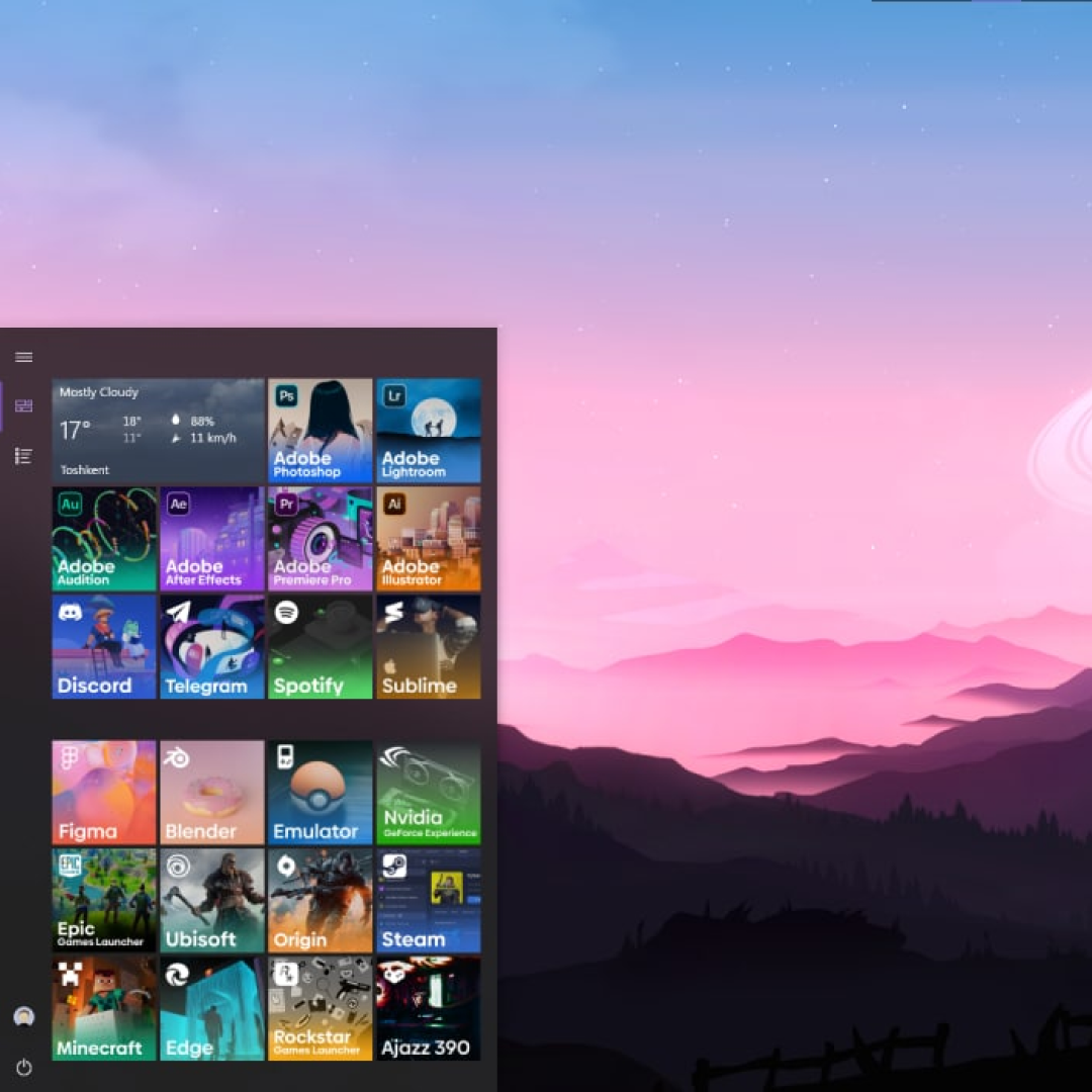 Так делаем для всех программ которые мы добавили в плитки.