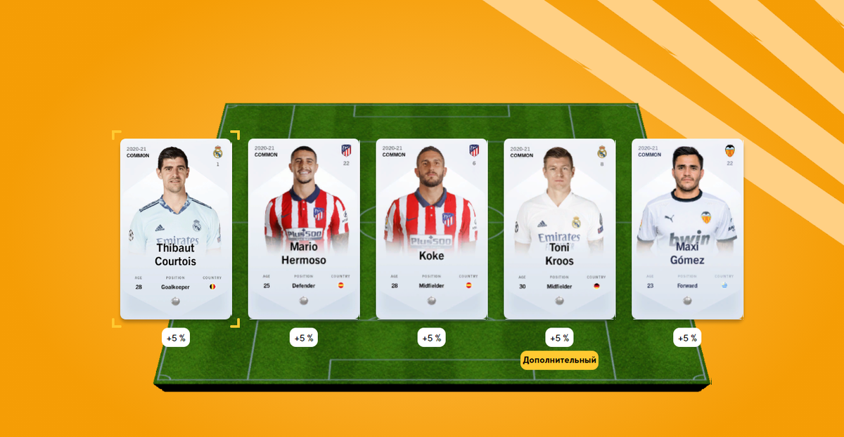 Суть в том, что вы будете получать карточки реальных футбольных игроков и с их помощью создавать фэнтези-команду из 5 игроков в различных турнирах: