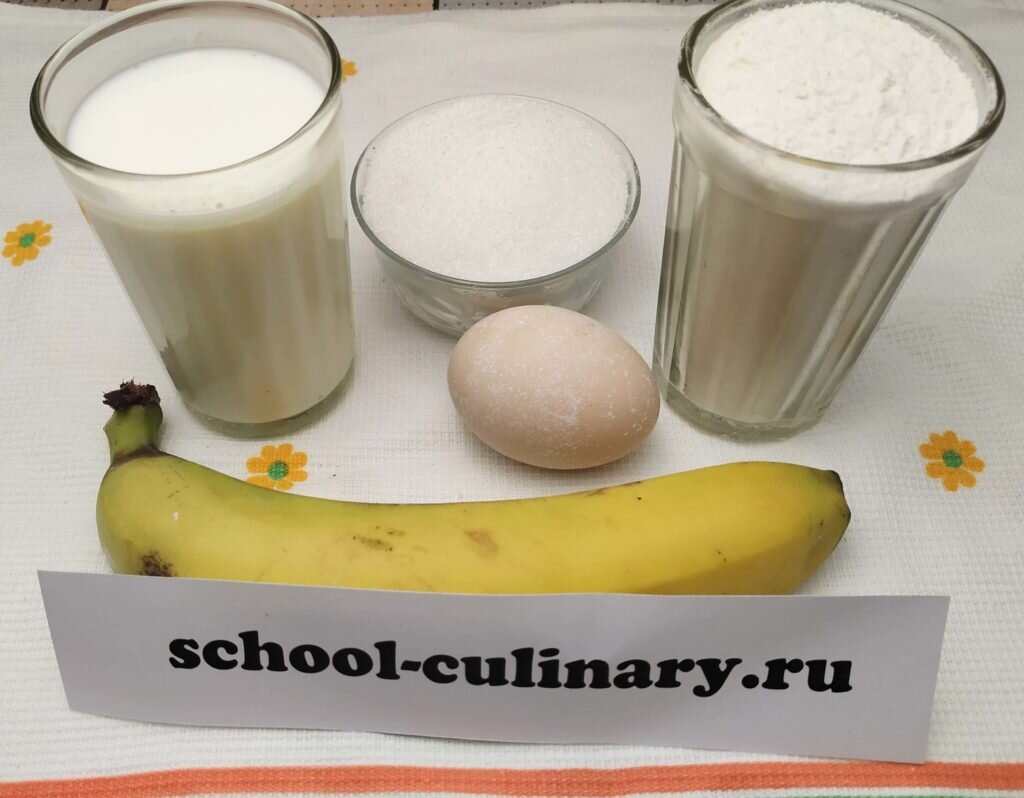 Банановые оладушки - это отличный вариант для завтрака, полдника. Быстро пекутся, получаются мягкими, нежными, с лёгким ароматом банана. Дети просто обожают эти банановые оладушки. Можно на банановые оладушки положить нарезанный слайсами банана, будет ещё вкуснее! Думаю можно сочетать и с другими фруктами и ягодами, они добавляют свежести, сочности. Ингредиенты: Приготовление. 1. В миске разминаем банан вилкой до пюре образного состояния. 2. Добавляем сахар, тщательно перемешиваем венчиком. 3. Разбиваем яйцо, перемешиваем. 4. Выливаем стакан теплого молока, перемешиваем. 5. Теперь добавляем муку и разрыхлитель, хорошо перемешиваем. 6.Доливаем растительное масло 3 столовые ложки, тщательно перемешиваем.Тесто должно получиться, как густая сметана. 7. Выкладываем банановые оладушки ложкой на сухую сковороду. Жарим на среднем огне. Когда на поверхности появятся пузырьки перевернуть на другую сторону. 8. С другой стороны жарим примерно две минуты. 9. Готовые баночный оладушки можно также по