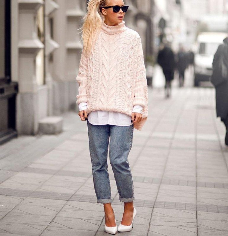 Что-бы не нарушить пропорции женской фигуры образ можно дополнить ремнем, также следует оверсайз вещи сочетать с облегающими. Например, оверсайз кофту можно сочетать с облегающими джинсами.