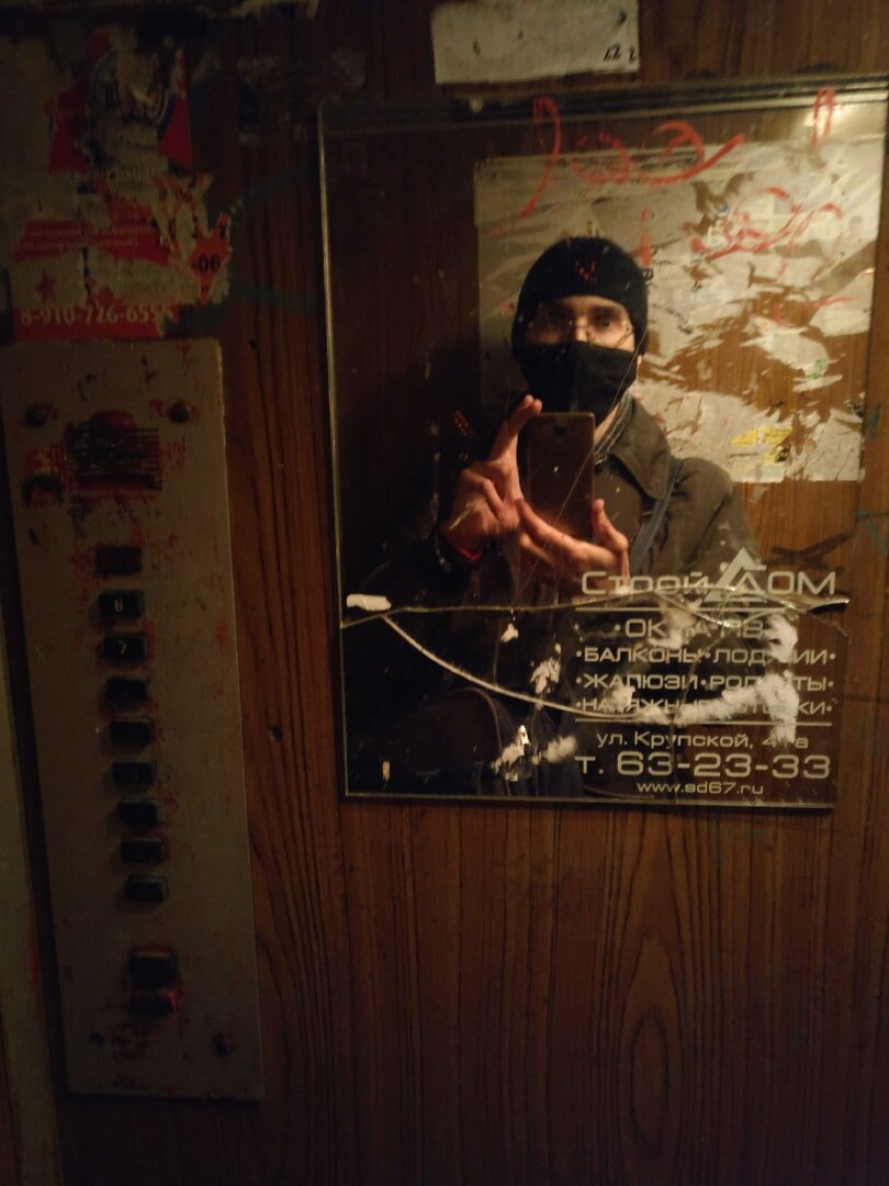 Но ты уже взрослый: тебя не пугают кнопки, разрисованные кроваво-красным маркером и выжженные сигаретой, не пугает полумрак, и дрожащий рывками свет, достойный благопристойного фильма ужасов, даже надписи, на которых ты узнаешь о тяжести поведения местных девчонок, вызывают у тебя лишь улыбку... А вот зеркало... Зеркало заставляет задуматься. Оттуда с вызовом смотрит на тебя молодой, сильный и даже, наверно, умный мужчина, который понимает, куда катится этот... лифт.