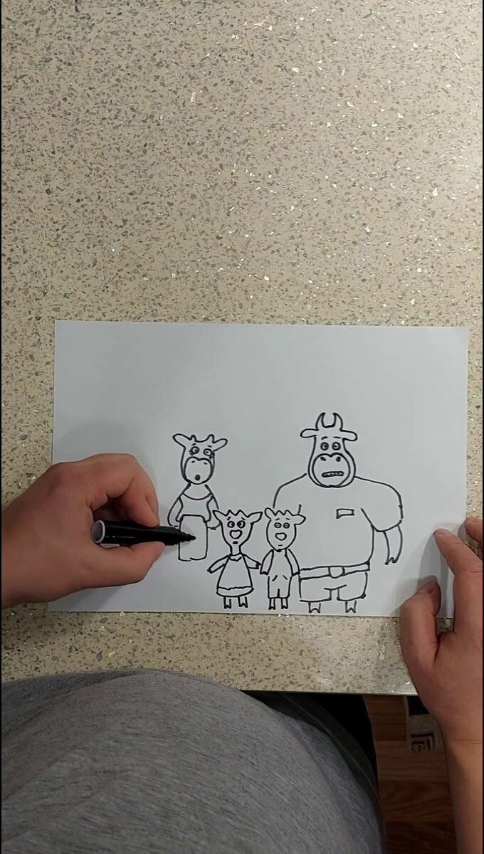 Рисую персонажей мультфильма Оранжевая корова. Домашняя сцена.